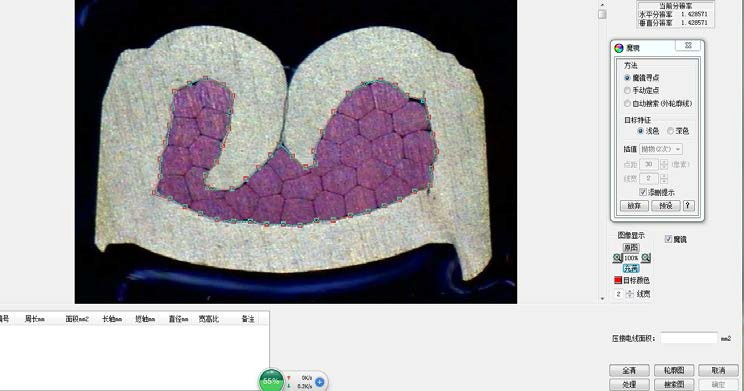 软件具有自动搜索、魔镜寻边、手动搜索等功能,图像在任何情况下都能选出软件中相应的测量方式,找到边缘并一键测量出压缩比和压缩率等相关数据,好学易懂,弥补了同类软件操作过程中很多不足之处。比同类软件更快捷更方便,大大缩短了操作时间,真正实现在3-5min内完成整个操作过程。